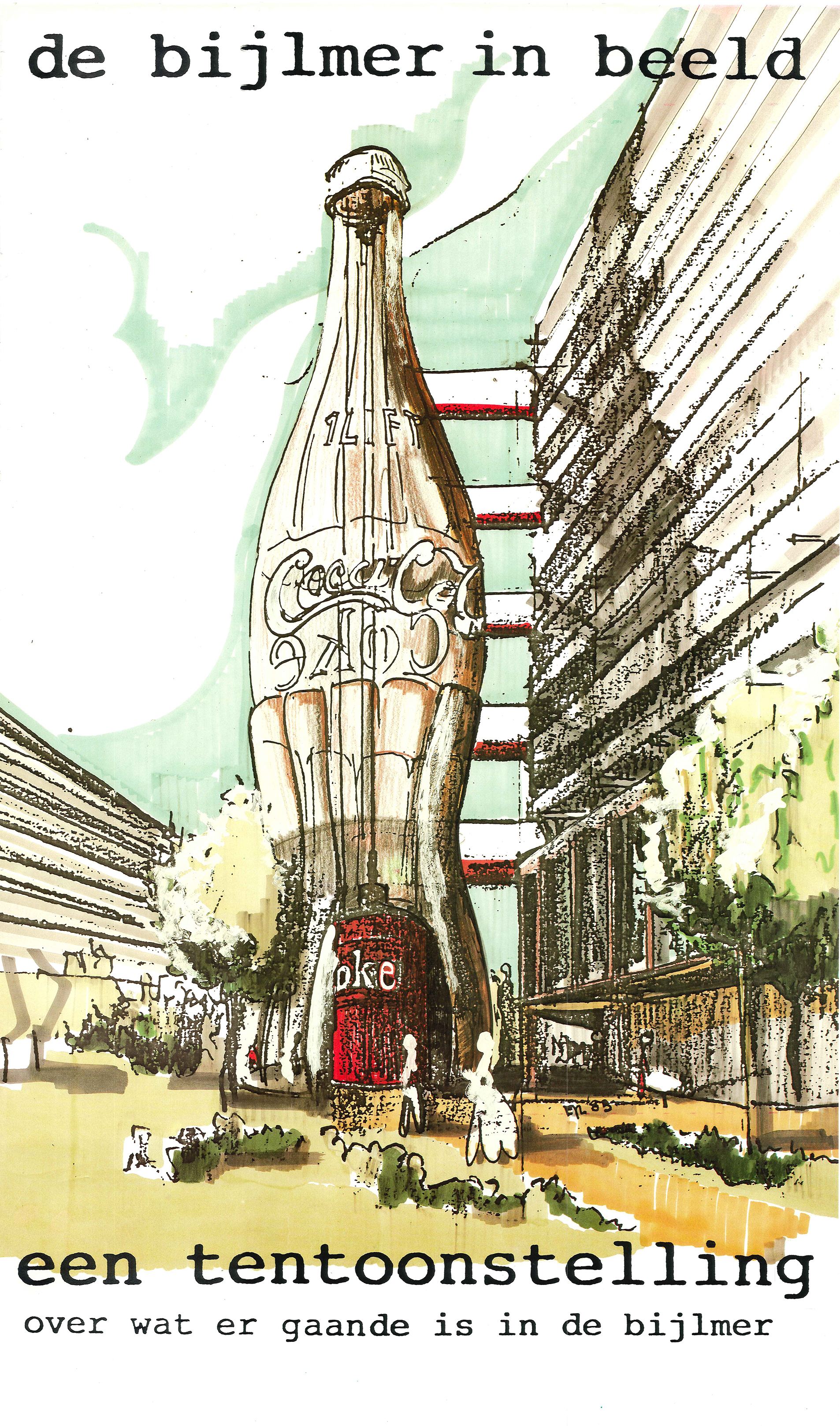 Suggestie lift in de vorm van een cola fles met aanvankelijke toezegging van 100000,-gulden van CocaCola company.